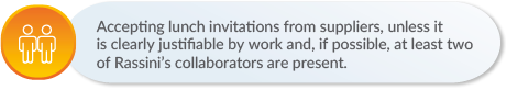 In case a supplier who has family ties with a Rassini collaborator is selected, the decision must be supported according to strict adherence to this CE&C and to the selection and hiring policies of the Business Unit where such supplier will be operate, and the case must also be immediately reported to the General Management of the corresponding Business Unit.