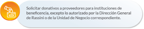 Debemos garantizar que la filosofía de trabajo de los proveedores sea congruente con los valores de la empresa y con el Código de Ética y Conducta.